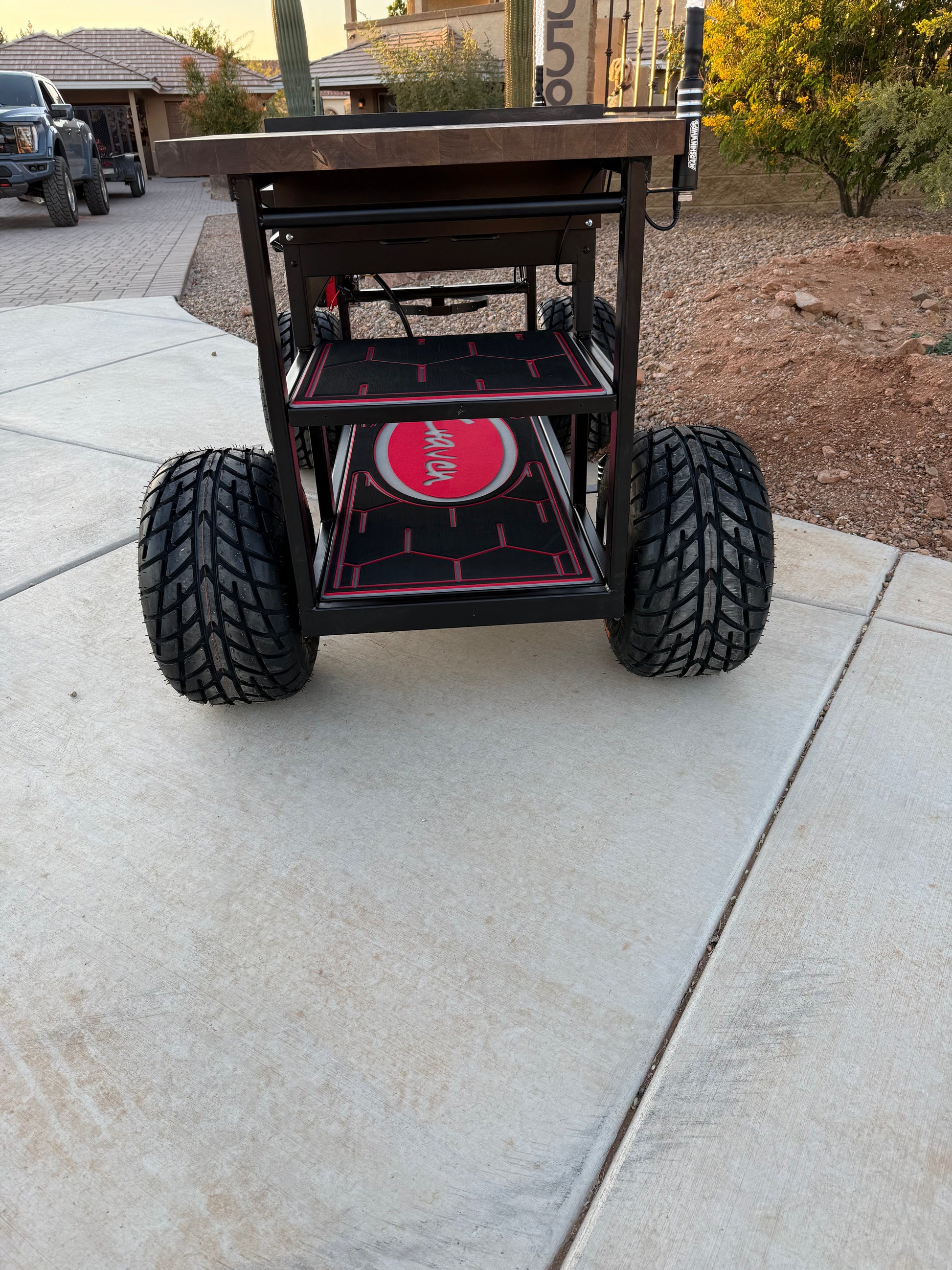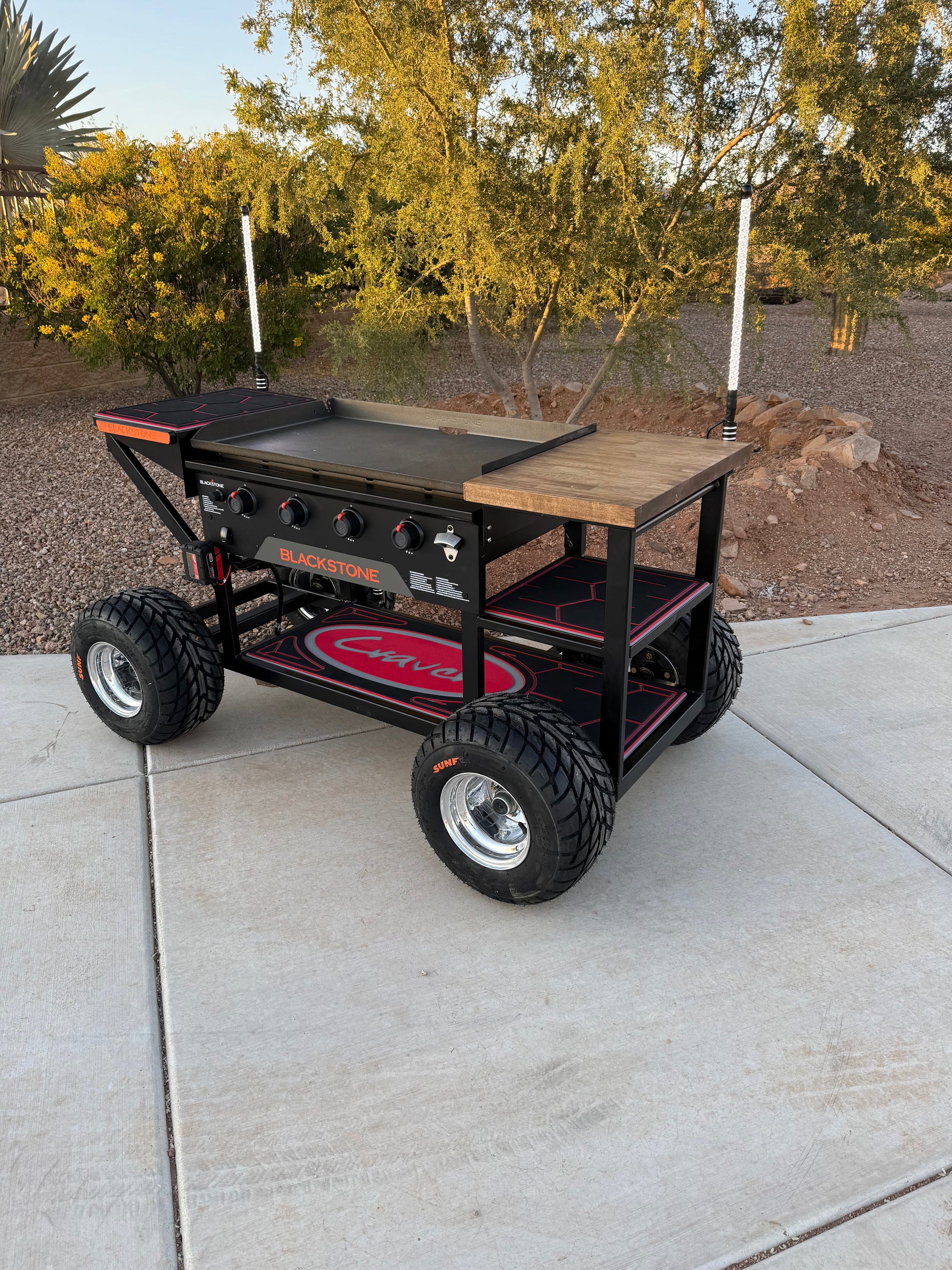 Take your outdoor cooking to the next level with the Craven Creations Off-Road Black Stone Grill. Built for adventure, this grill is designed with off-road enthusiasts in mind, featuring rugged construction and thoughtful details that make it a standout addition to your gear. With a convenient butcher block side for meal prep and integrated mounts for Marshin Whips, this grill combines functionality and style for the ultimate outdoor experience.