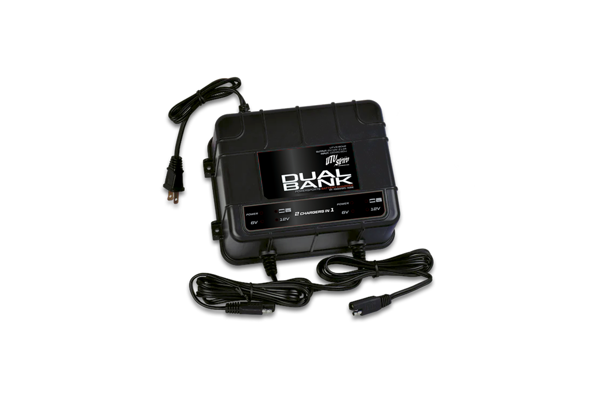 We recommend our UTV Stereo 12V Automatic Charger/Maintainer, or our UTVS Dual Bank Battery Charger/Maintainer