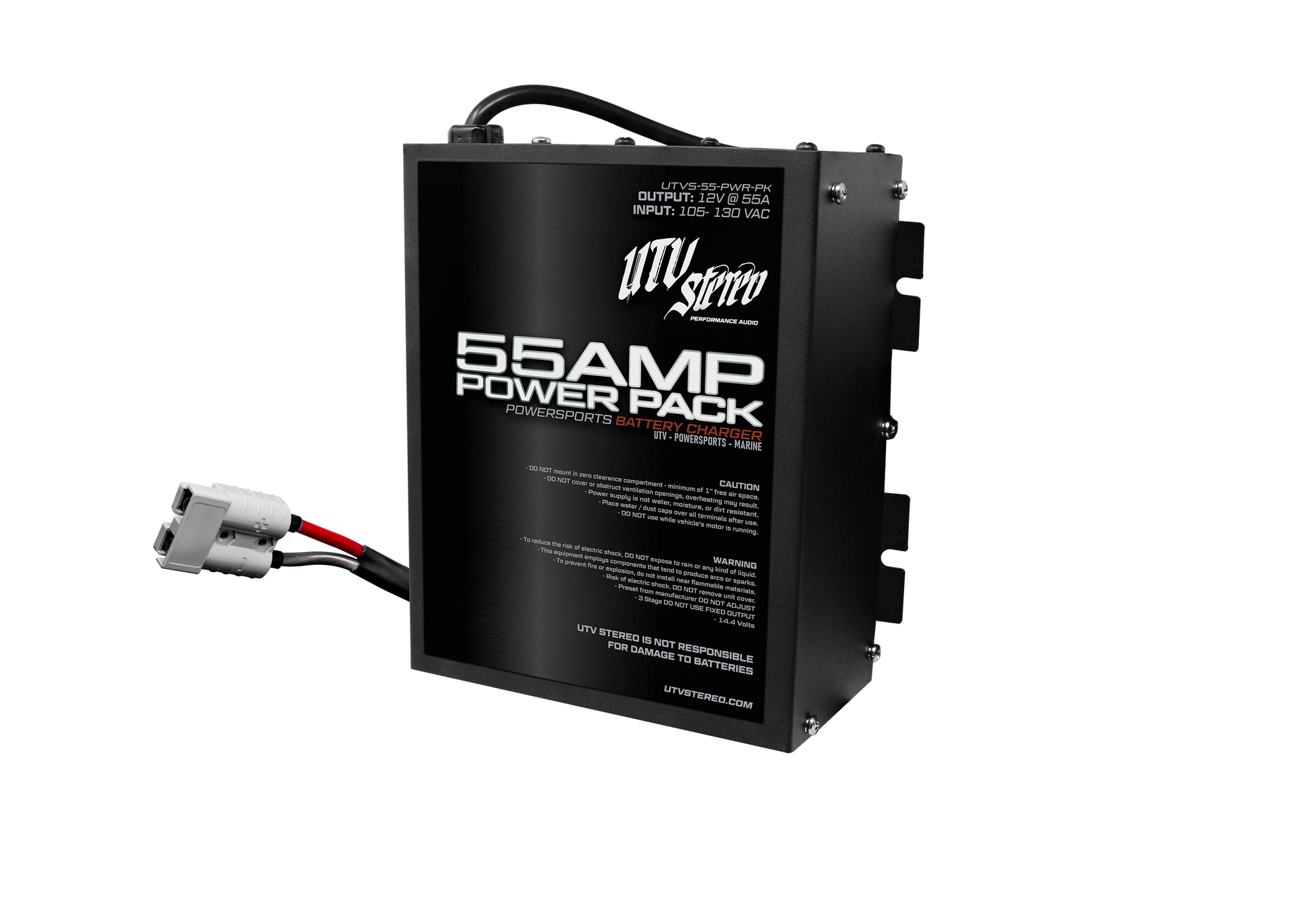 We recommend our UTV Stereo 12V Automatic Charger/Maintainer, UTVS Dual Bank Battery Charger/Maintainer or our 55A Power Pack