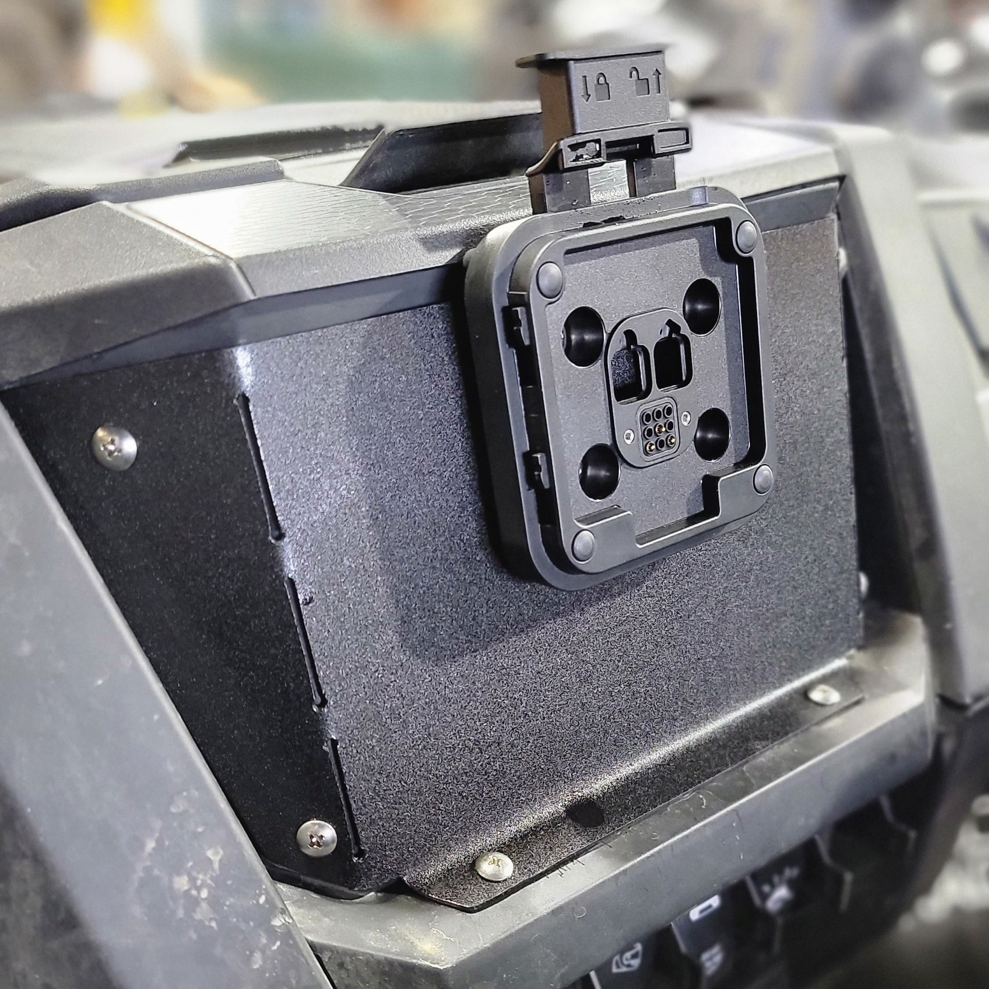The Garmin Tread GPS Series is quickly becoming the go to GPS for offroaders. The map layout, trail selector, and overall user interface is superior to other units on the market. This GPS is an excellent addition to the Pro Series RZRs, especially if they do not have Ride Command from the factory. Fastlab created this simple bracket to mount the Garmin Tread GPS into the blank screen area usually taken up by Ride Command. This places it in a perfect accessible location for map exploration and still allows easy removal of the unit. The cutouts allow you to run the power cord behind the dash to avoid messy wires in the cab. GPS sold separately.