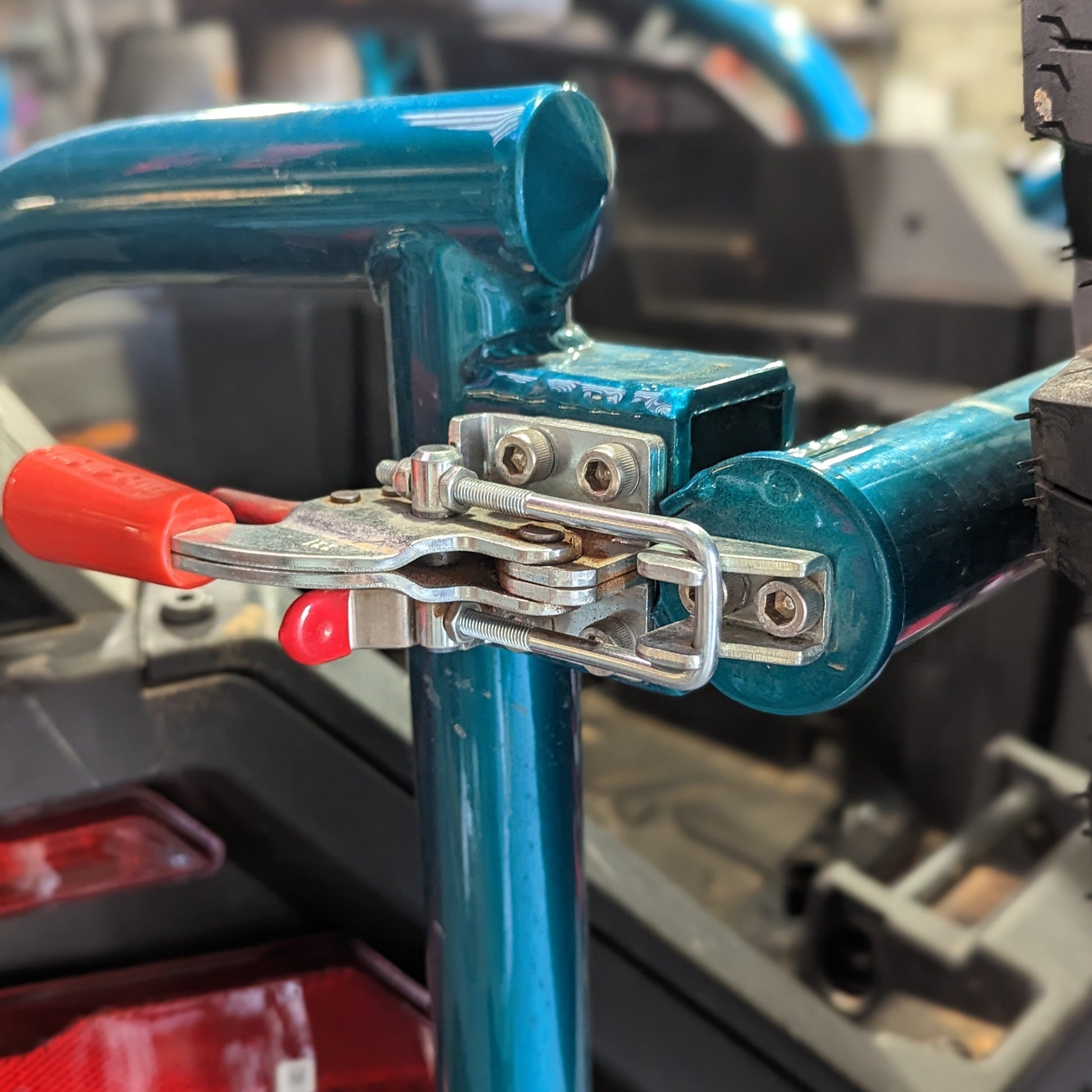 Attaching at 4 locations, this spare tire carrier spreads the load across your frame and roll cage with minimal trimming required. A dual locking latch means this swing out won't rattle loose and open when your charging down the trails, even with 70lbs hanging off the back!