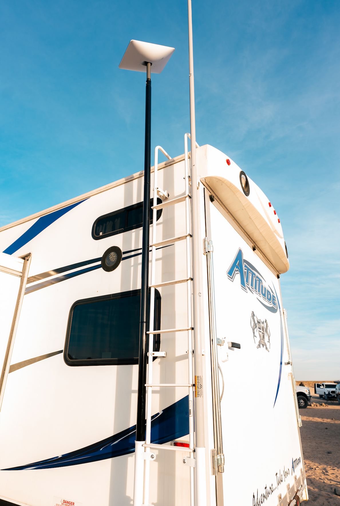 Introducing the Poles and Holders Starlink Mount: Your Universal Solution for Starlink Installation! Our innovative steel pole system is designed to seamlessly attach your Starlink into any of our 22' holders (Must be purchased seperately). It's as easy as taking our precision-crafted billet aluminum adapter, connecting it to your Starlink device, and effortlessly sliding it onto our sturdy powder-coated pole. The included pins ensure a secure fit.