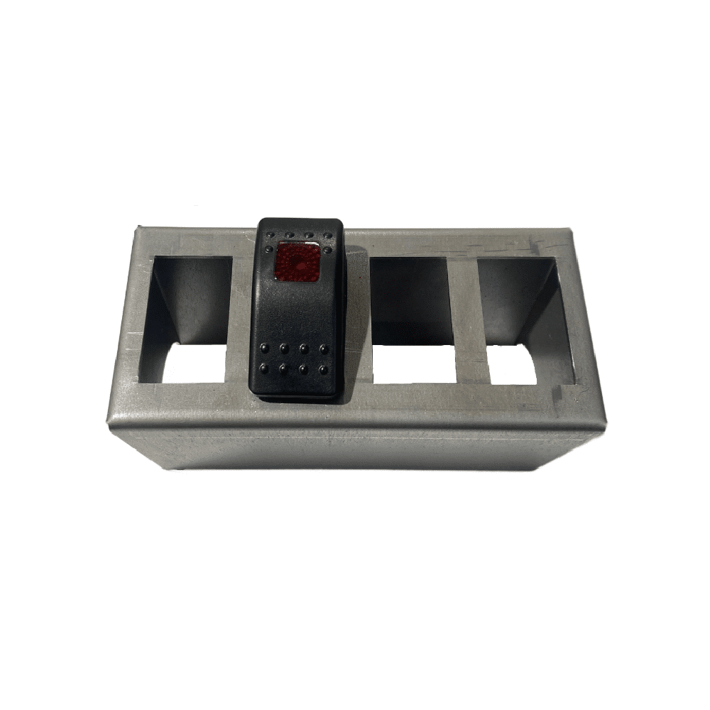 Our Weld on Switch Panel is a great option to mount your switches. You are able to weld this anywhere you would like so it is within arms reach. The mount is CNC laser cut and bent from 16 thick steel. Our switch panels come prebent and all you need to do is weld the four seems while you are welding this mount on your tubing. This is designed for 1.75" diameter tubing but will work with most diameters.